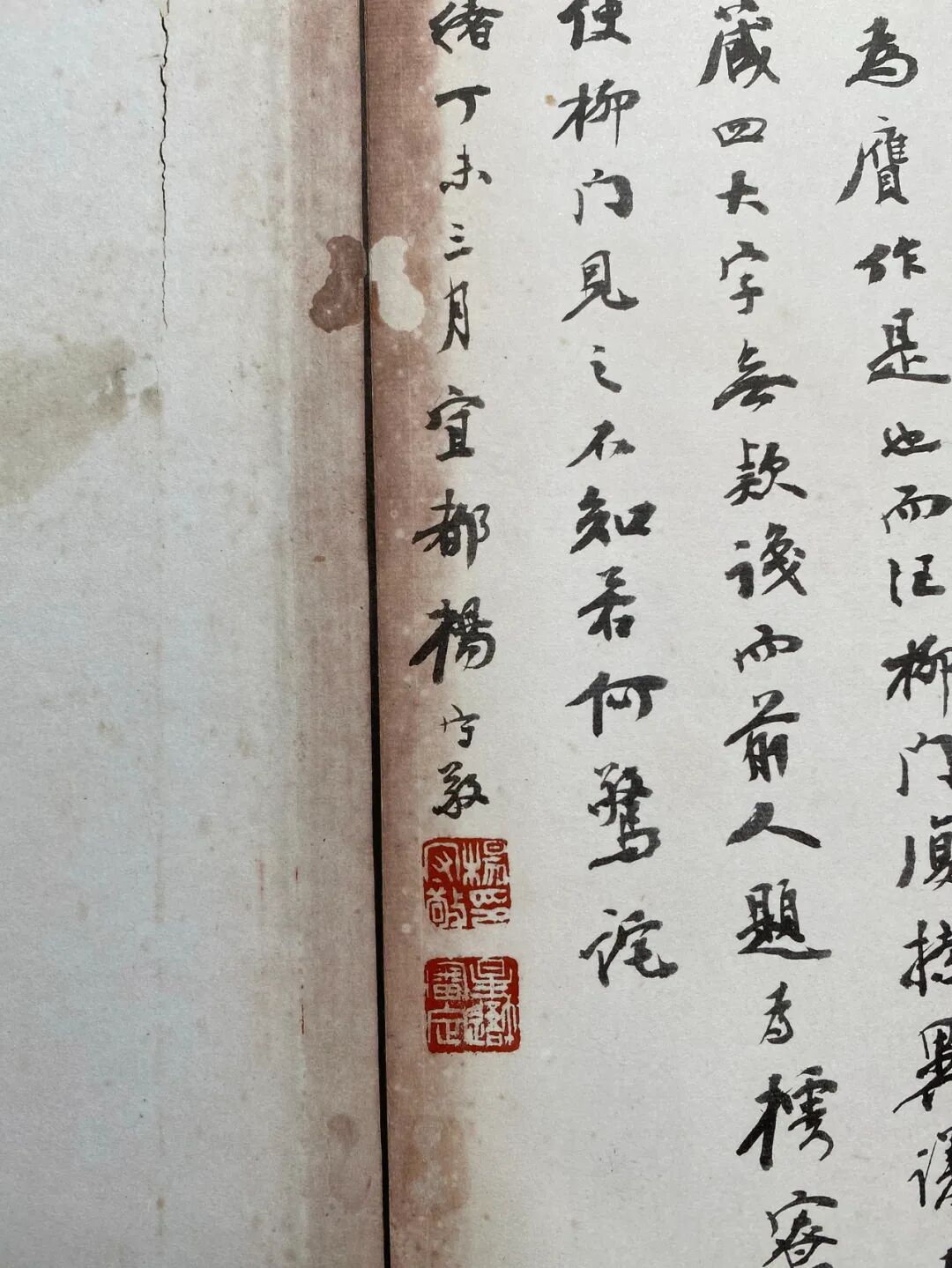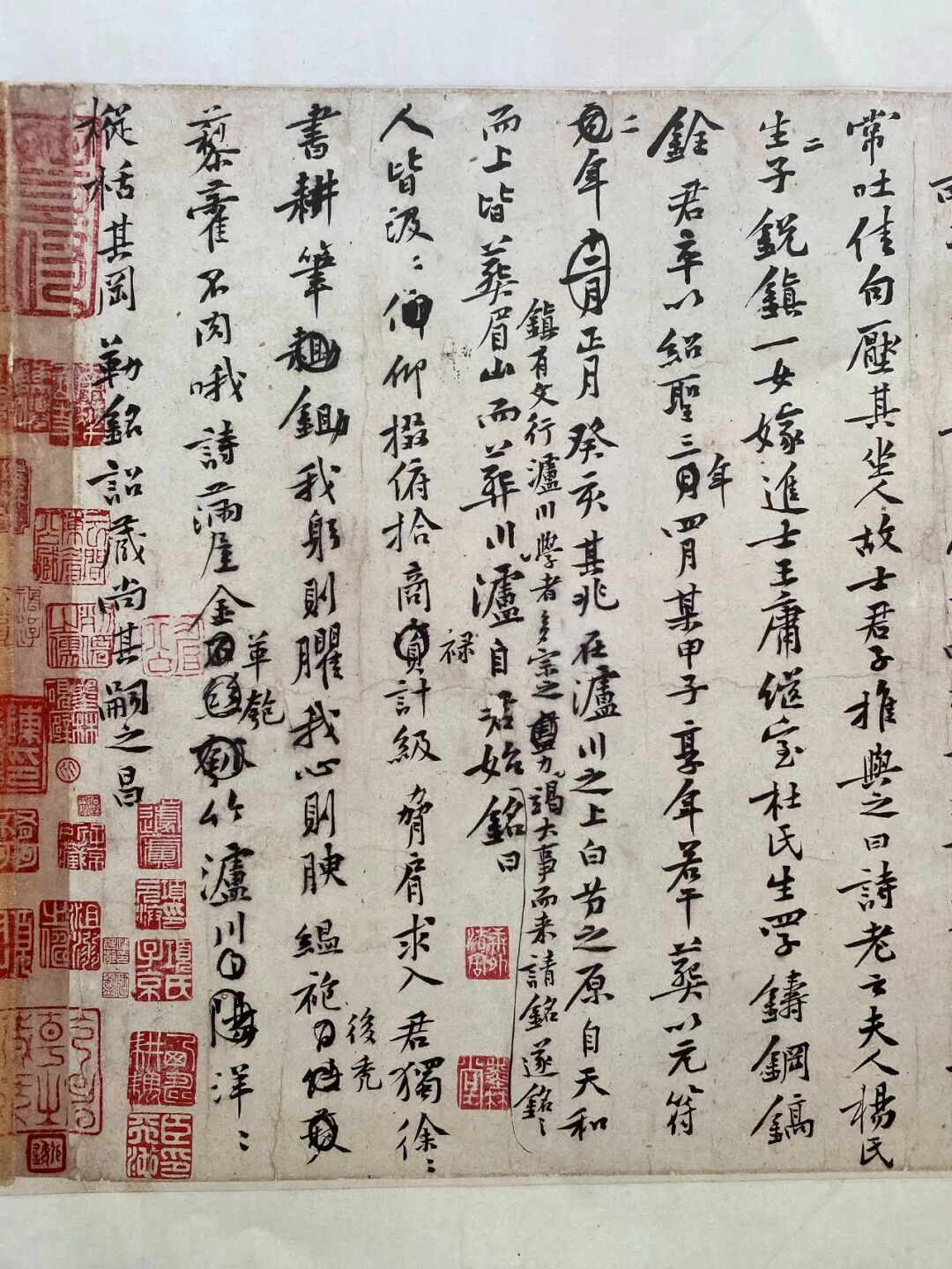 《宋故泸南诗老史翊正墓志铭》稿,凡二十一行,另补写五行,行二十字左右。全稿文字涂改约二十处,亦非定稿本。“泸南诗老”史扶,字翊正。史氏家族自唐僖宗年间入蜀,占籍于眉山。史氏少时笃学能诗,然屡试科举不第,后游泸州,闭门读书并教授弟子,士人推与之曰“诗老”。绍圣三年(1096)四月卒于泸州,葬于元符二年(1099)正月。时黄庭坚贬官戎州(今四川宜宾),史扶嫡次子史镇遂请为撰墓志铭。此墓志铭稿无署款及年月,因其中有"葬以元符二年正月癸亥",徐邦达先生《古书画过眼要录》定此墓志铭为元符二年所作,时山谷五十五岁。