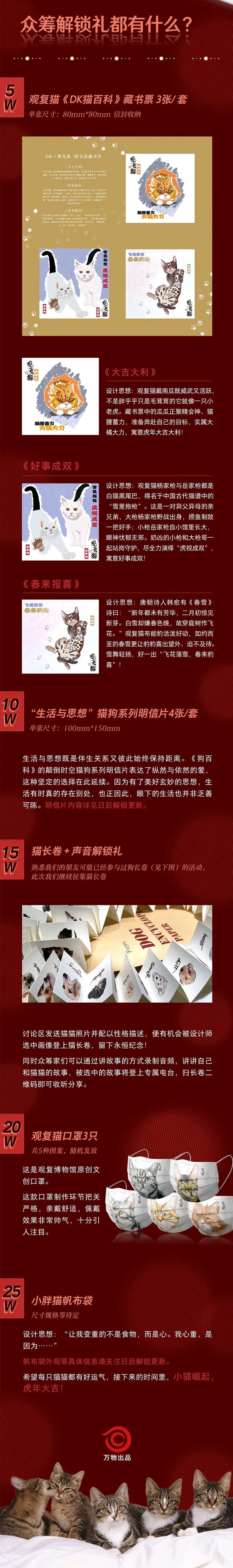 5W藏书票、10W明信片...15W的解锁项小编最期待,听说敲油菜花的美编之前在做狗百科的时候征集了很多众筹小伙伴和狗狗的故事,绘制成了狗长卷+声音解锁,同样这次达到额度也会有猫长卷+声音解锁,更多解锁福利请认真看长图喔!