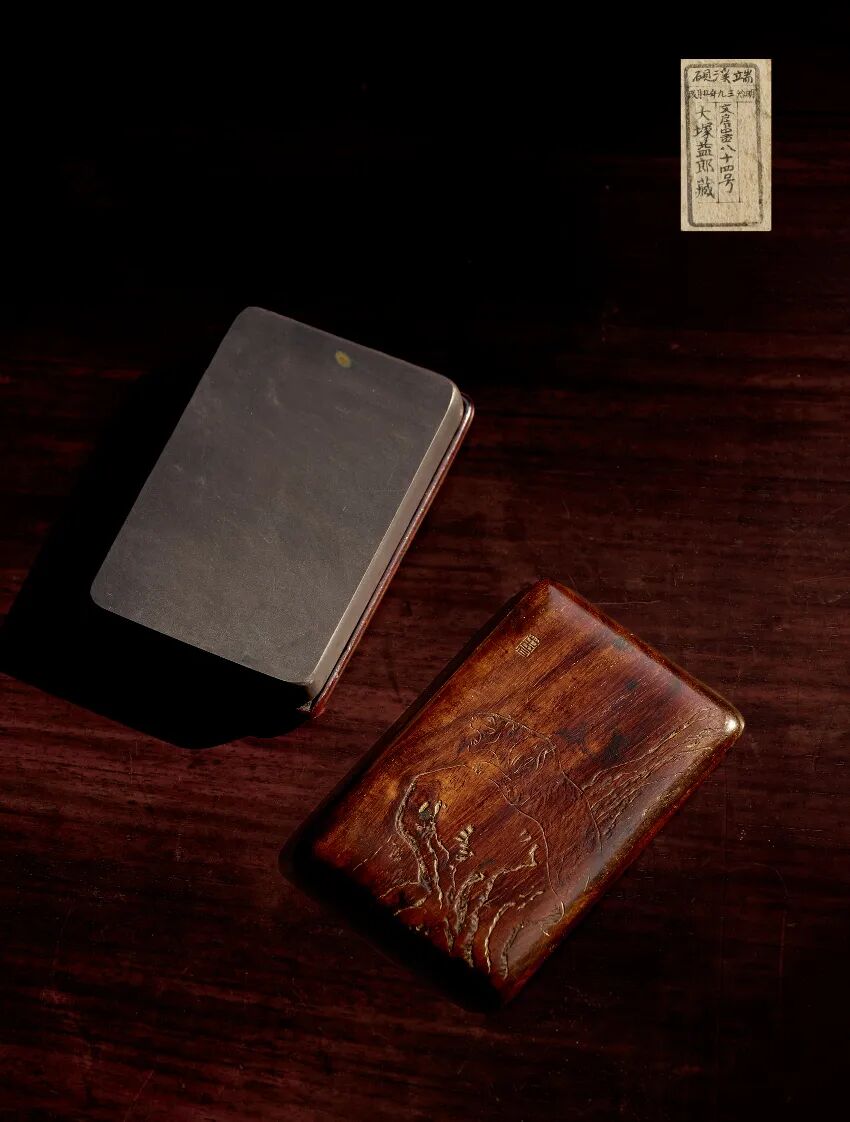 木盒题字:端溪匣一品。端溪砚。明治三年五月改。大冢益郎藏文房墨八十四号。
