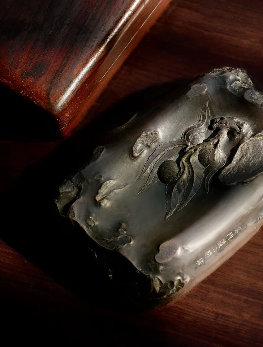 清 · 顾二娘作多子多福荔枝纹子石端砚