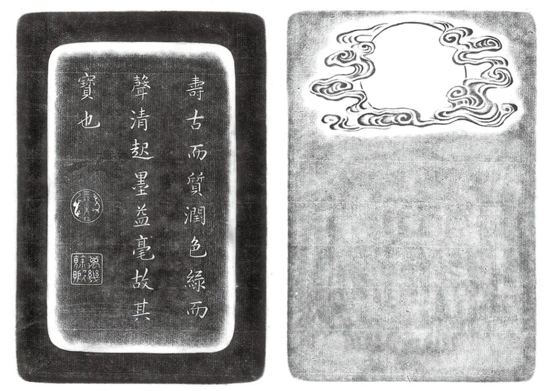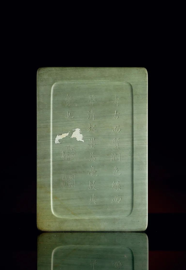 铭文:寿古而质润,色绿而声清。起墨益毫,故其宝也。印文:体元主人 万几余暇