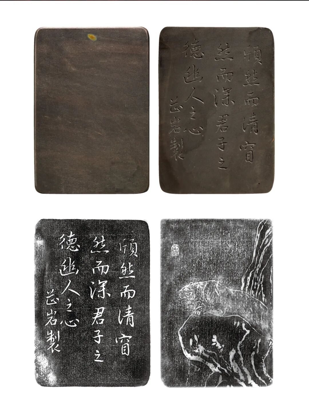 铭者简介:顾二娘[清],姓邹氏,琢砚名家,江苏吴门人,约活跃于康熙晚期至雍正年间。顾二娘夫公为顺治年间姑苏城制砚名家顾德麟。顾德麟将技艺传与其子顾启明,惜启明早逝,只好由顾二娘继承。顾二娘沿袭顾德麟刻砚之古雅,再揉合了纤巧、雅致的风格,所刻之砚台,以三至五寸之小品砚台为多。