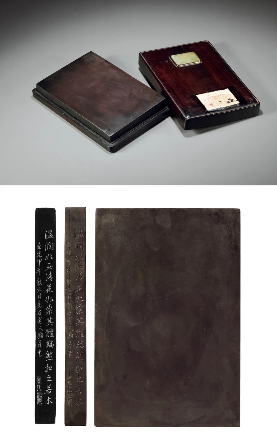说明:lot2871-lot2875号拍品由同一藏家提供。配红木嵌翡翠砚盒。