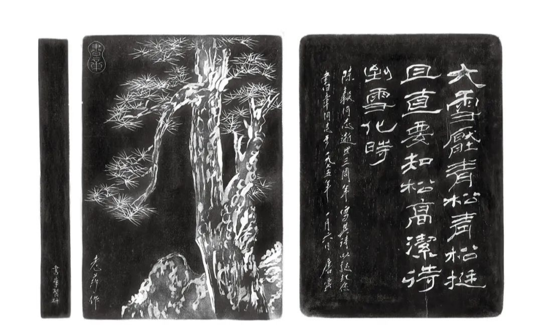 唐云画、白书章作云松纹老坑端砚