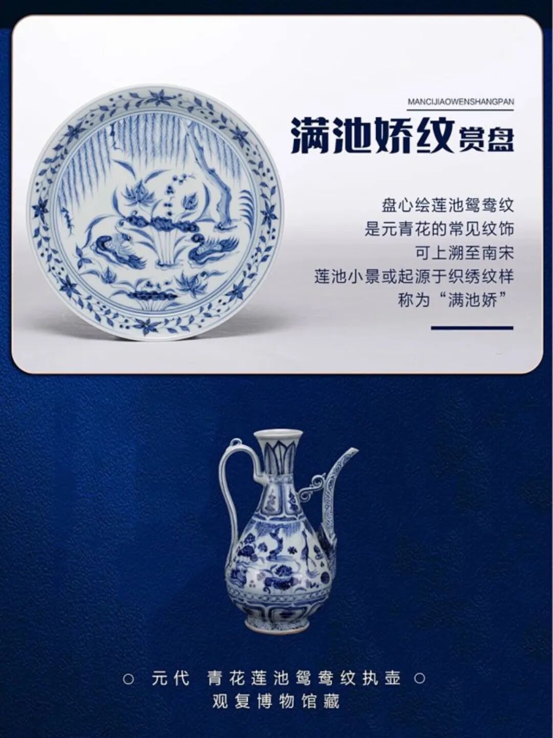 元青花是神秘的,也是丰富的,其上汇集着蒙古文化、中原汉族文化与西域波斯文化 的血统,有很多经典纹饰寓意深远,比如“满池娇”。