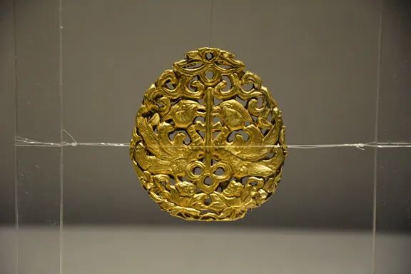 彼时这种纹饰也出现在当时的各种器物上,如此件南宋金帔坠,其上的鸳鸯与莲花寄托了几多对生活的美好向往: