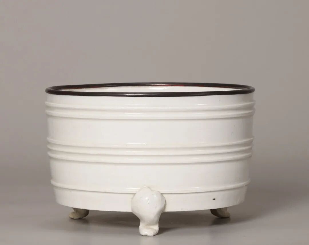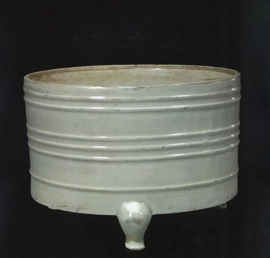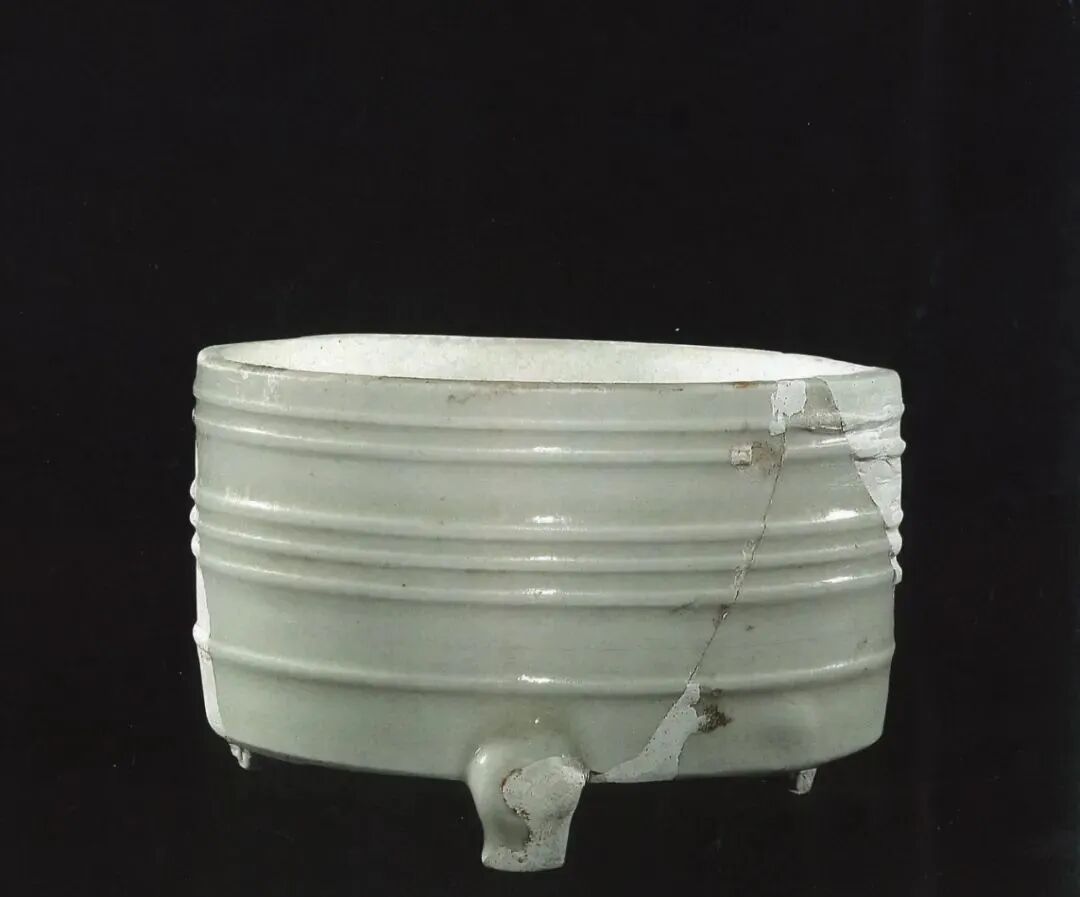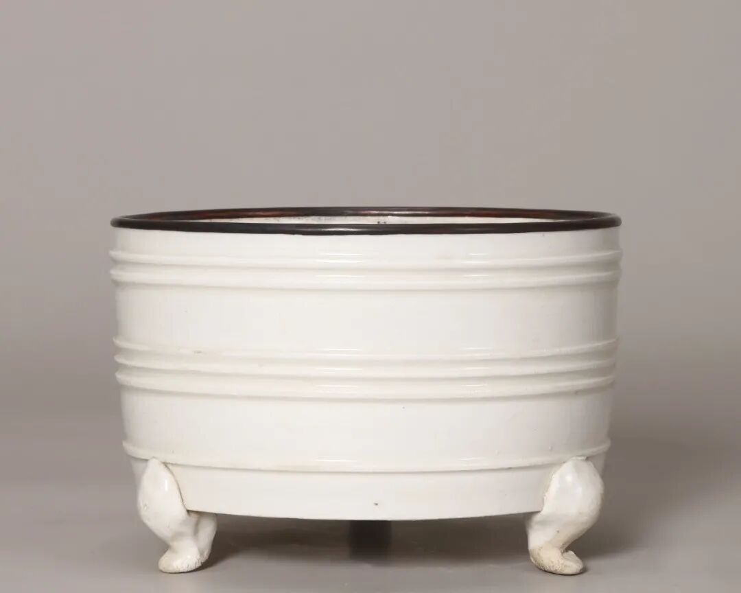 明 定窑白釉弦纹三足奁式炉