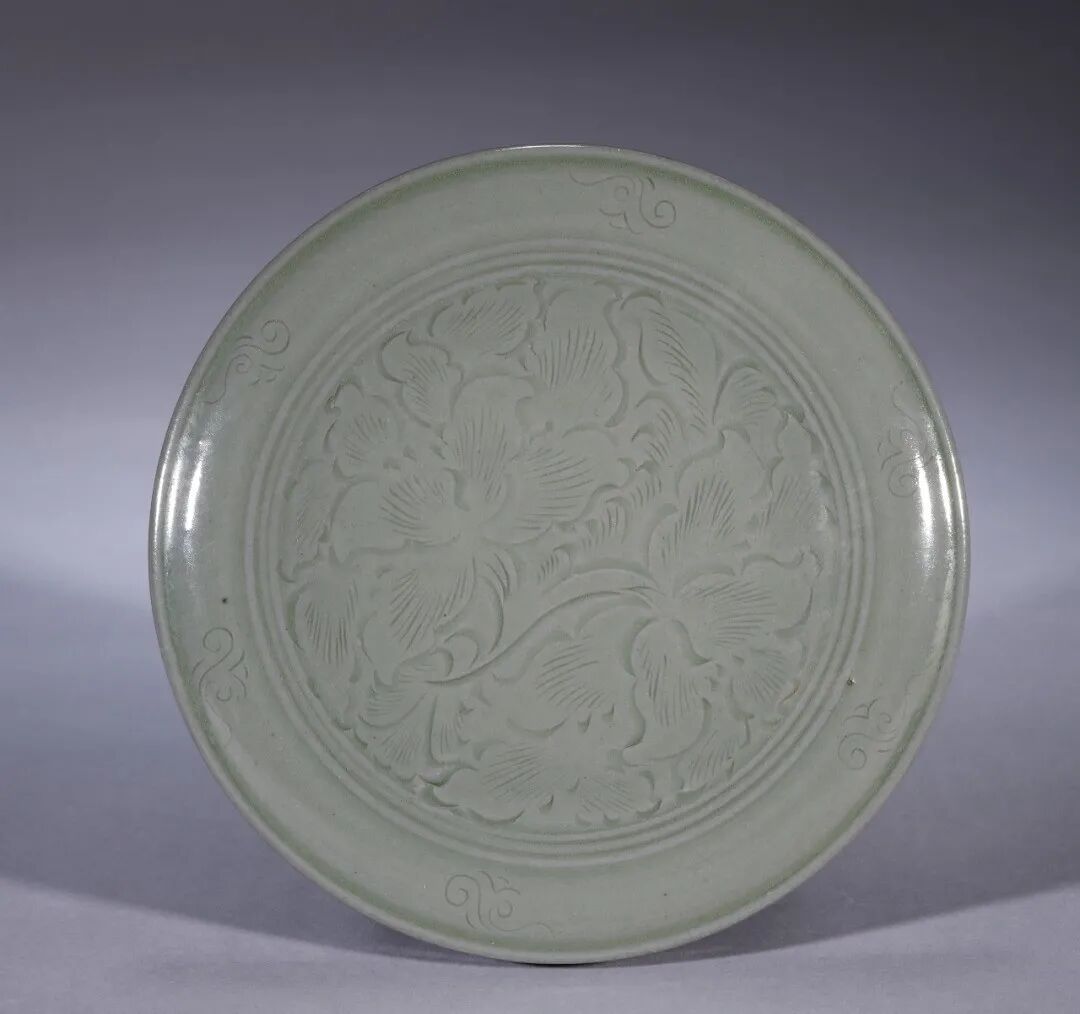 明 定窑白釉刻花卉螭龙纹小盘