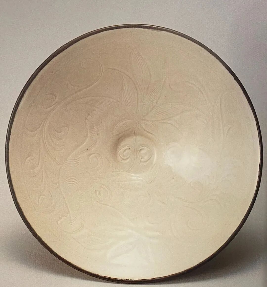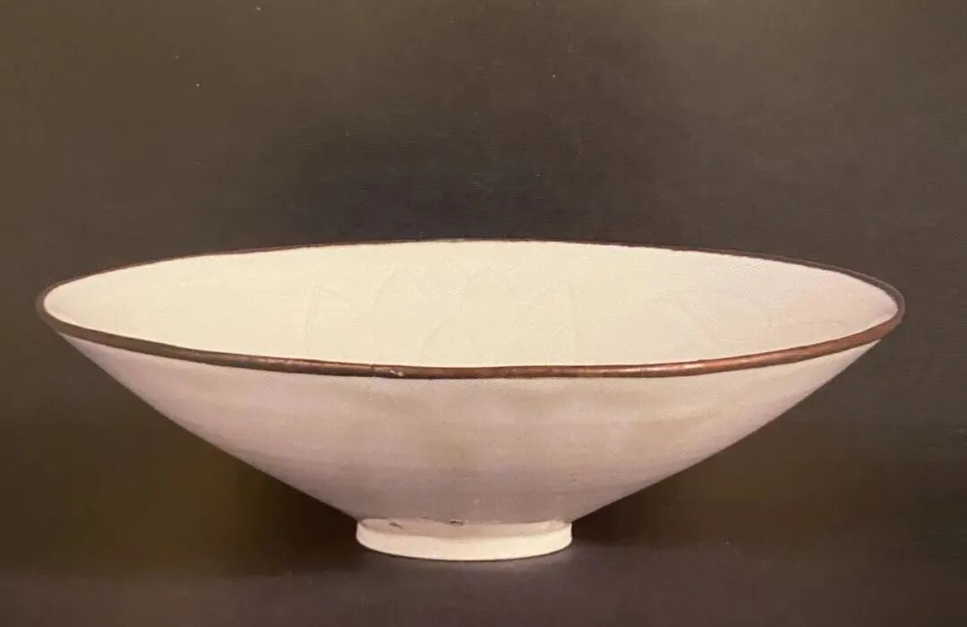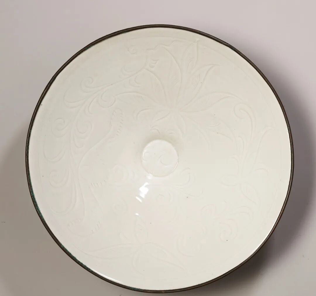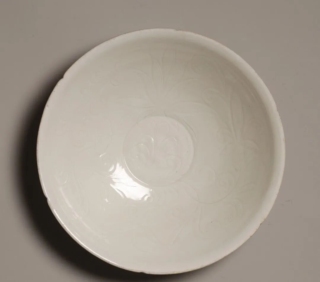 北宋 定窑白釉刻花卉纹斗笠碗