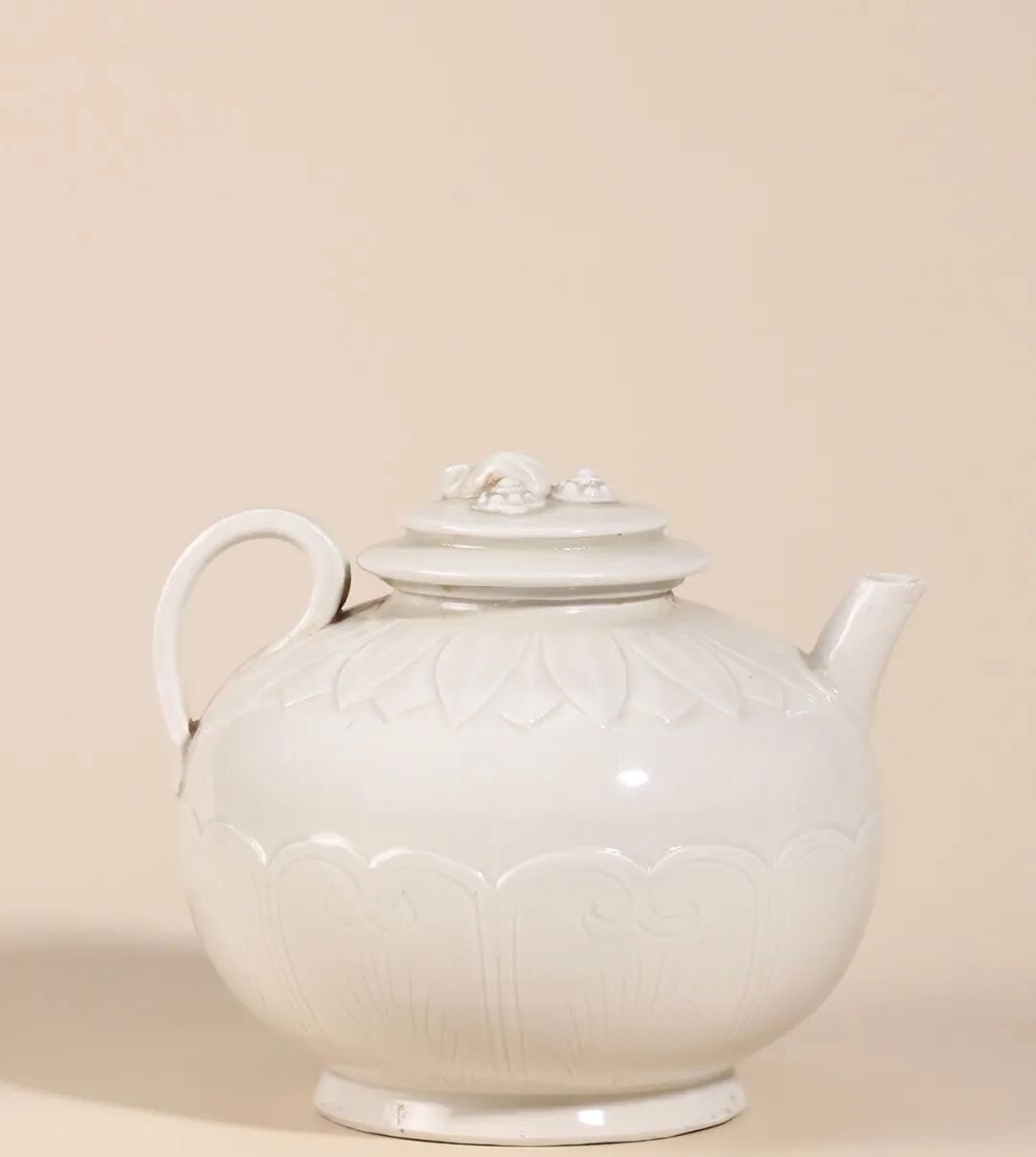 明 定窑白釉“官”字款刻莲瓣倒流壶