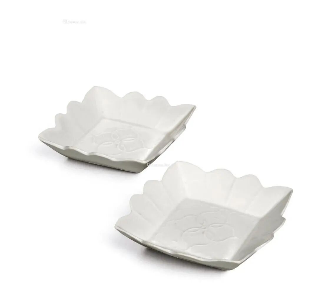 五代/北宋初 定窑沥粉堆花「官」字款方盘一对,