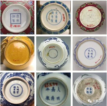 康熙瓷器官窑多见不落款,在这里特别要指出的是,不能把是不是落款作为确定康熙瓷器是不是官窑的必要条件。康熙瓷器除了有落‘大清康熙年制’外,还有“康熙辛亥中和堂制”、“康熙壬子中和堂制”、“康熙御制”。很多康熙官窑瓷器没有落款,而很多官窑落“大明宣德年制”、“大明成化年制”、“大明嘉靖年制”、“大明万历年制款式”虽然推翻了大明王朝,宫廷里对反清复明避而不及,但在官窑瓷器上落明代款也算一个奇迹。康熙民窑款式也算跌宕起伏,据《浮梁县志》记载:“康熙十六年,邑令张齐仲,阳城人,禁镇户瓷器年号及圣贤字迹,以免破残”根据这段记载可以推测,由于康熙十六年以前书写了相关年号引起官方忌讳,所以有了这条禁令,但这条禁令绝不涉及官窑作品。民窑书写年号和圣贤字迹少了,后来康熙瓷器底款书写堂名款、吉祥语、图画款式变得丰富多彩,许多款式也成为了康熙瓷器所特有的,给鉴定带来了方便。![]()