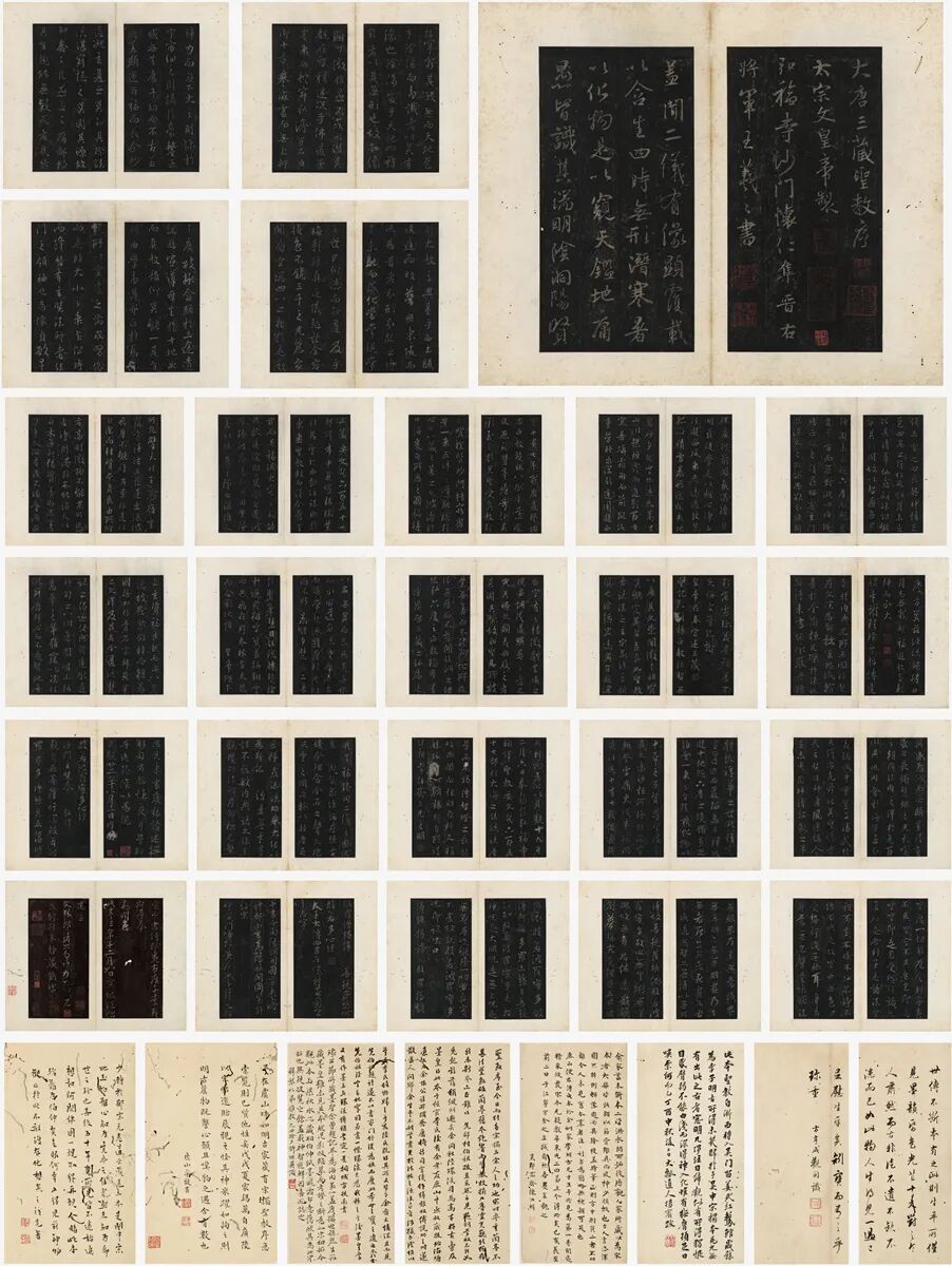 提要:《唐怀仁集王圣教序》是中国书法史上第一块集字碑刻,有“三绝碑”、“千金碑”之盛名。由唐太宗亲自撰文,倾注沙门怀仁二十余年心力而成。张彦生《善本碑帖录》云:“此碑自刻成为世所重,捶拓无虚日。”时踰千禩,碑字面貌出入颇大,故世以碑断之前宋本为重,又北宋更罕。