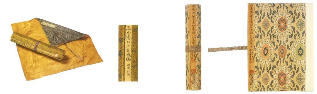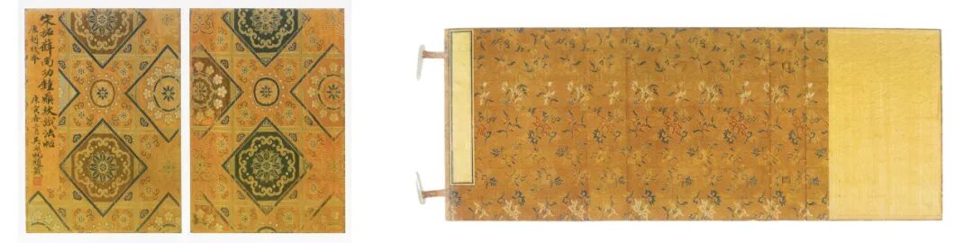 俗语说“佛要金装,人要衣装”,书画、碑帖、古籍出于保护、美观的目的也需要讲究的装潢设计。“装潢”一词始见于南北朝时期,后为历代习用,泛指对纸质书籍和书画碑帖的保护保存方法,与此相关联的词还有“装裱”、“装帧”、“装池”、“装订”等。明周嘉胄《装潢志》云:“装潢能事,普天之下,独逊吴中。”宋锦,亦称宋式锦,作为吴中物产,因其质地柔软、色泽饱满、图案丰富、寓意祥和等特点为中国传统装裱选料所青睐。有清一代,更受宫廷内府所重,《天禄琳琅》藏书“宋金版及影宋抄皆函以锦”,以示差等。《石渠宝笈》著录部分珍罕书画、善本宋拓等亦以宋锦为书衣、函套、夹袱,芸香辟蠹,箧藏护佑。清末民国以后,龚心钊、吴湖帆、叶恭绰等鉴藏名家更开古锦潢装之新篇,展现出各自独特的审美视觉及装池个性。