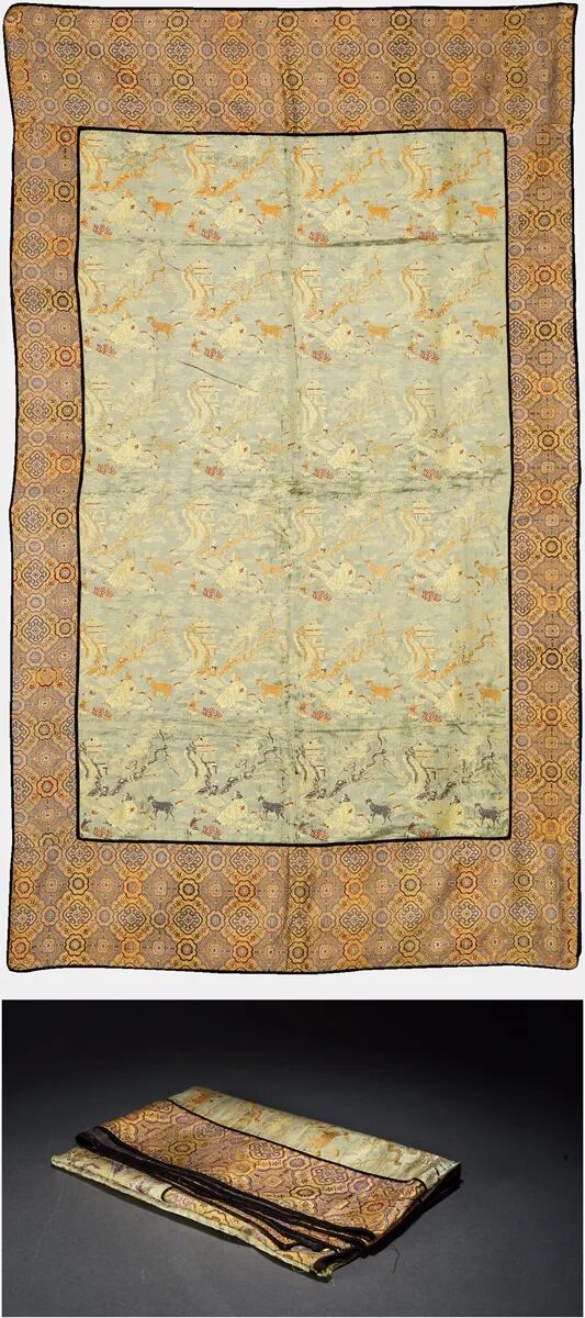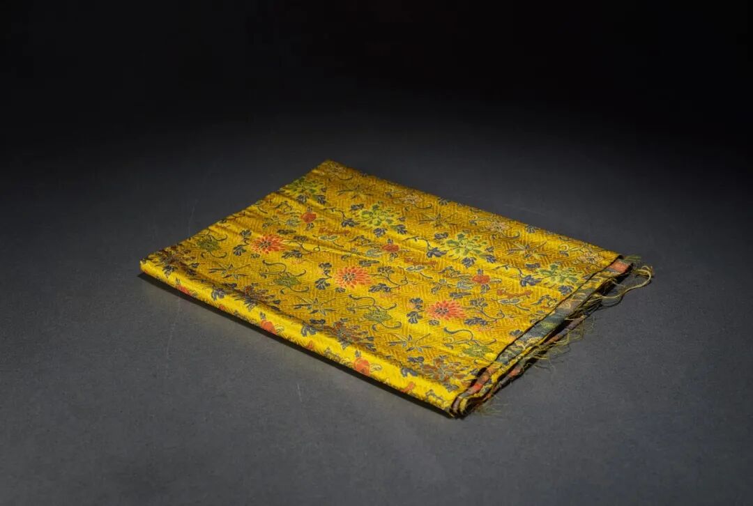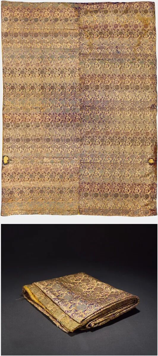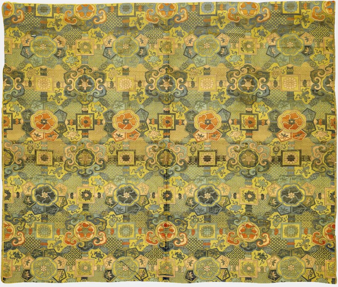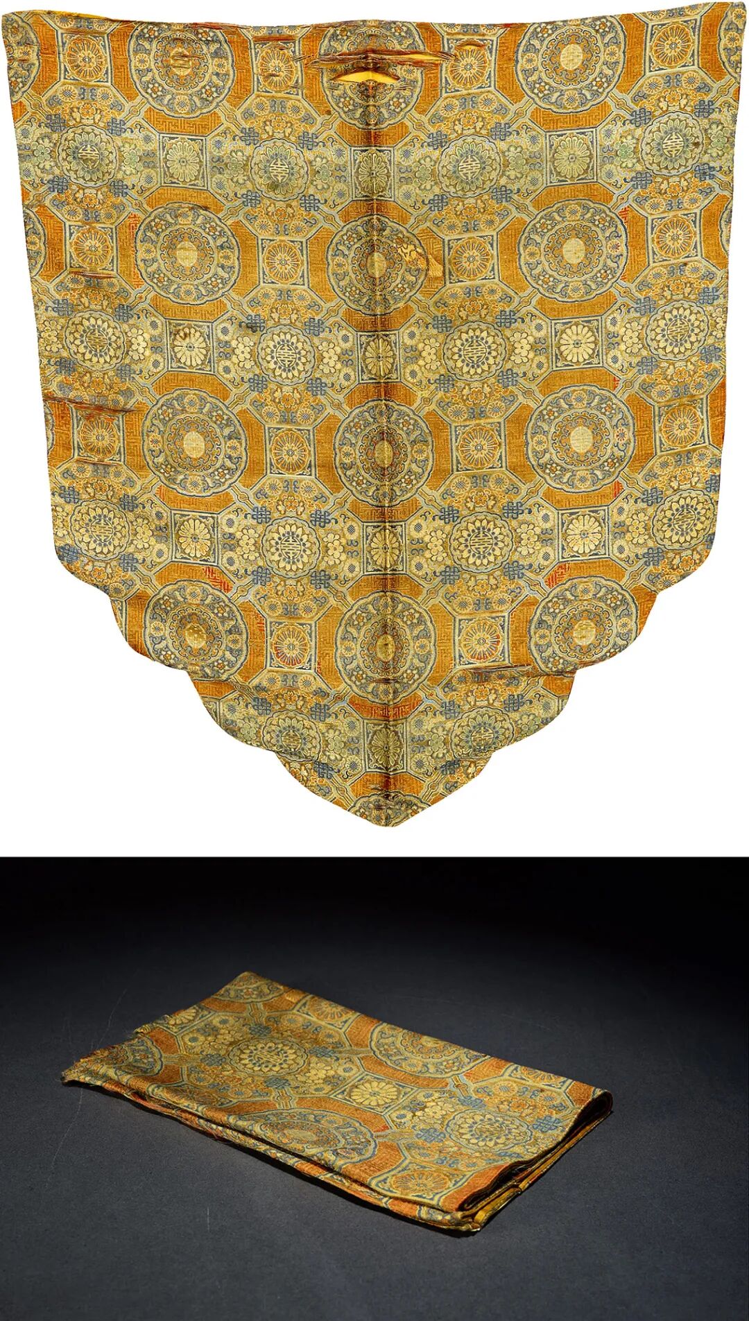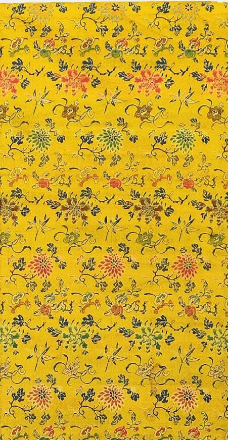 Lot496清·缠枝牡丹纹织锦、黄地云纹覆背