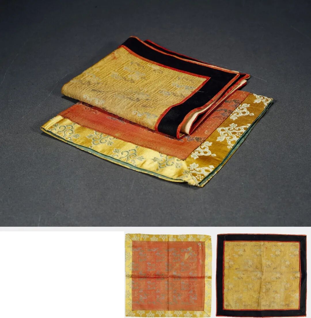 提要:1. 红地云纹如意凤凰锦方巾,1张,镶黄边,有覆背,尺寸:41.5×40 cm。