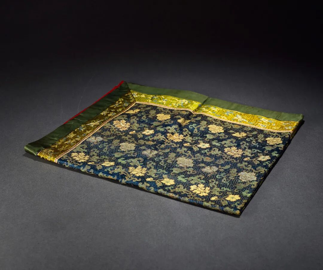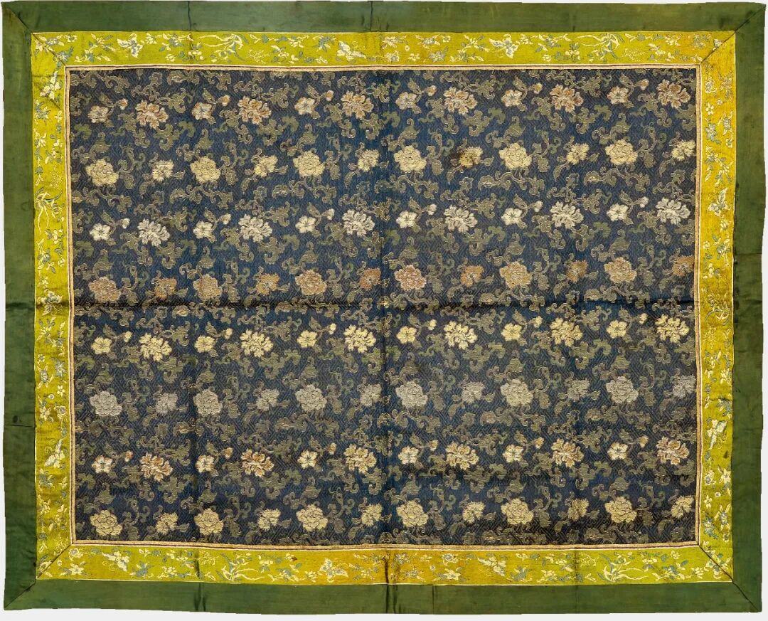 Lot483清·蓝地团龙纹织锦镶八宝边