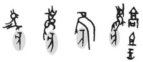 甲骨文告诉我们,“亥”是商王朝的祖先,商王朝的祖先一出现就有一个鸟。最右边那四个字,左边是“亥”字上面一个鸟,右边三个字是“高祖王”,合起来就是“高祖王亥”。