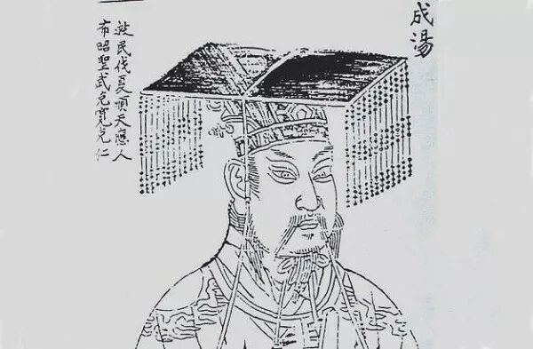 这是商朝的开国之王商汤,商汤的形象是戴一个这样的皇帝的帽子。但是这是后人的想象,有点可笑。真正的商朝人的长相,需要靠考古发掘。