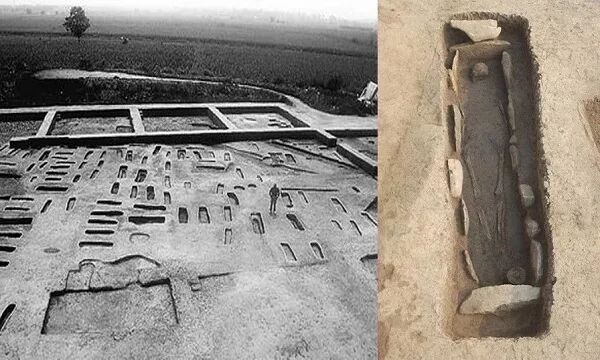 而其中有意思的是,人骨头这个事情还真是露出了曙光。因为在河南的鹤壁,由于南水北调,要把丹江口的水调到北京来让咱们喝,这个渠道经过鹤壁的时候流经一片麦子地,这个麦子地里发现了一批墓葬。