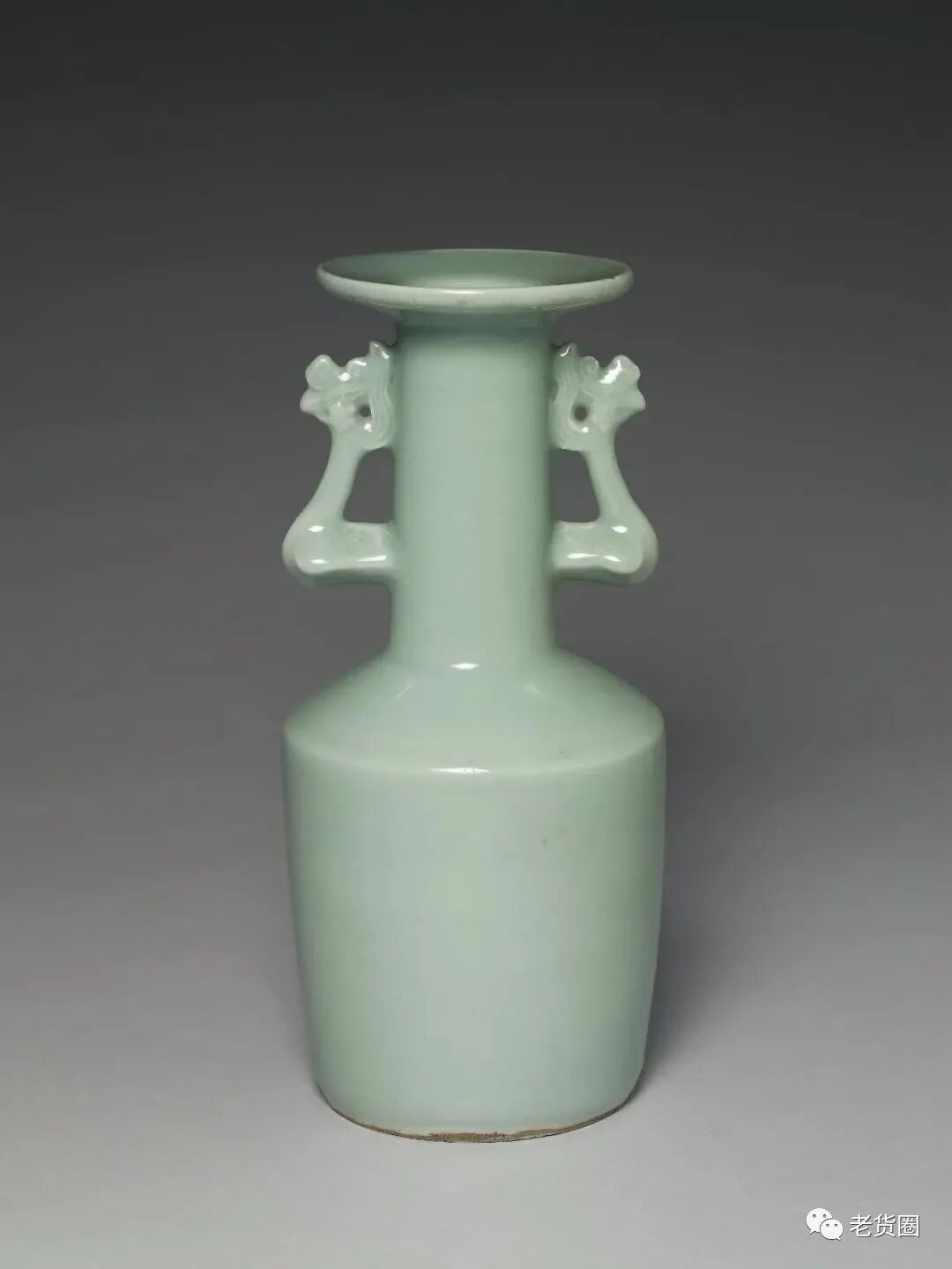 元 龙泉青釉贴「逐珠云龙」图双鱼龙耳瓶