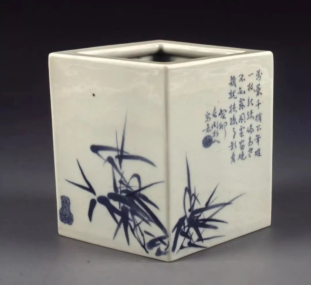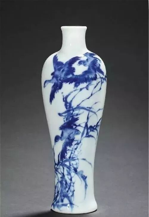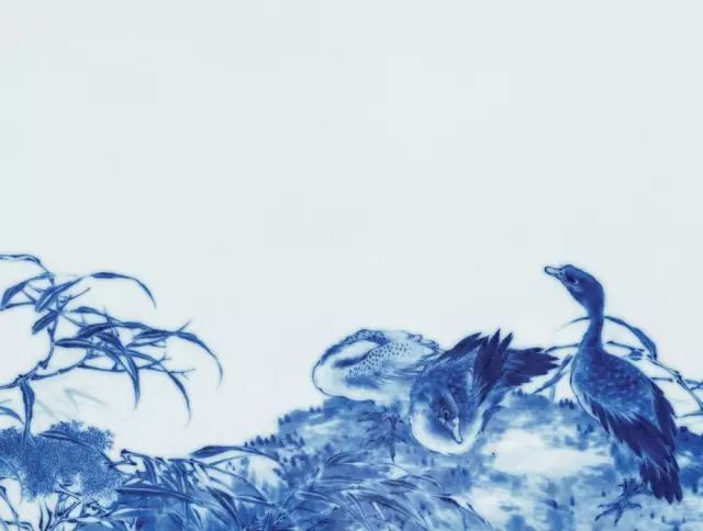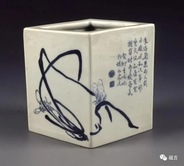 晚年的王步十分讲究青料与瓷釉的色泽,他所使用的青料多由自己配制,一般来说,青中微带蓝黑,关注公众号:磁言。给人以庄重、浑厚、宁静之感。他的青花瓷忌用纯百釉,而常用一种白里泛青光亮度较弱的釉子,他认为这种釉比纯白釉和古代的重石灰釉含蓄,与青花结合有温厚的效果而无浮滑之感。除此之外,他选用与青花相斗的釉下彩料时,也不用铬绿、锰红,而喜欢选用釉里红与龙泉青釉及淡紫金釉。由于使用这些材料绘制,他的作品常常获得浑厚的艺术效果。