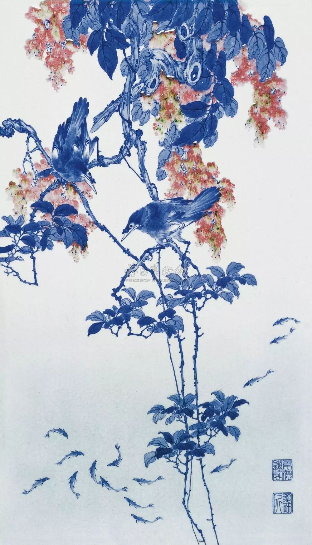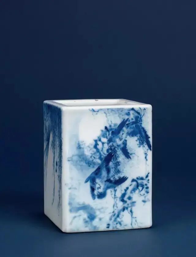 回观历史,青花多以山水、人物、鸟兽、花卉、瑞图为题。但青花虽美,也有其天然的缺陷,那就是色彩单一。青花瓷,若想具备意像上的“盛开”,必须首先具备视觉上的“多层”。唯此,方能展现其独特的意境。而要想达到这一意境,必须依靠“分水”之技。