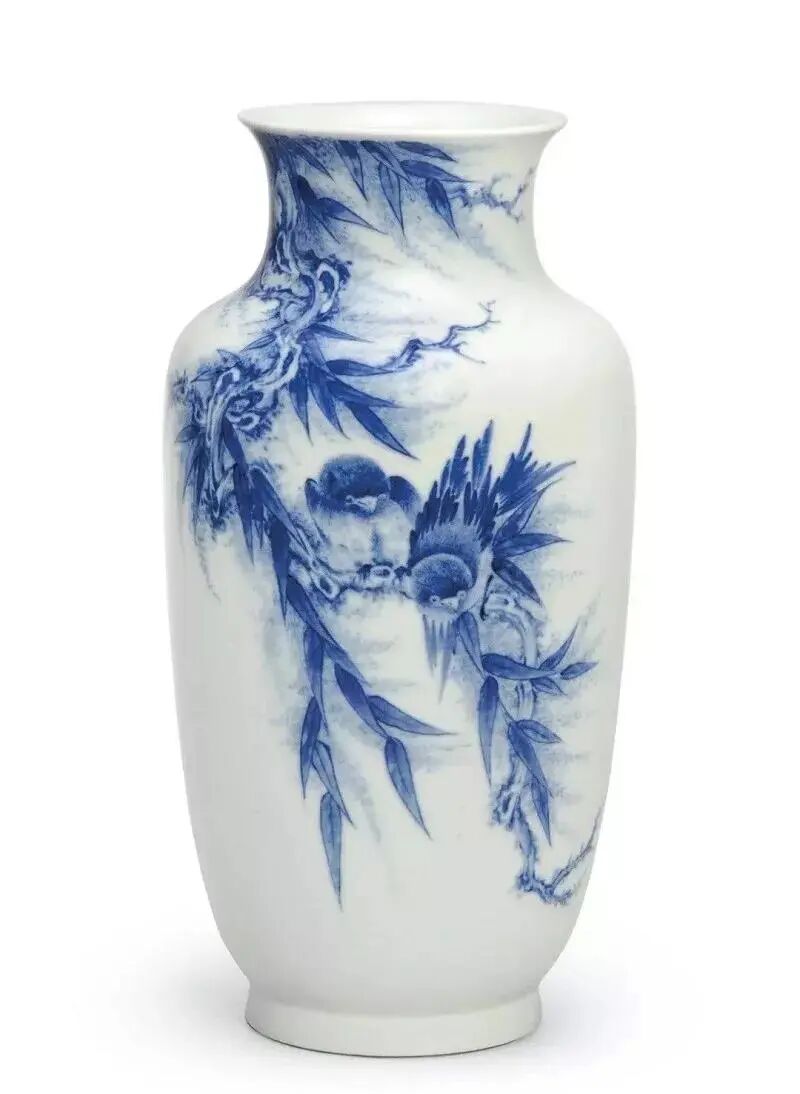 2018西泠春拍 民国·王步绘 青花双禽图观音瓶