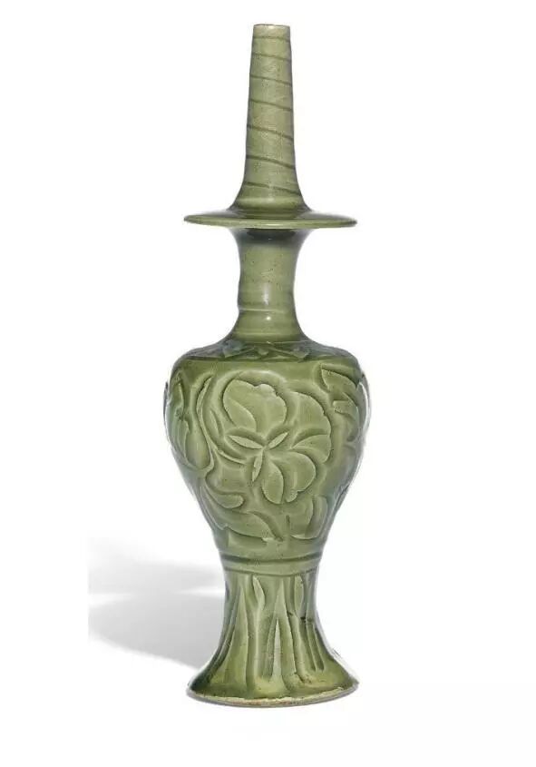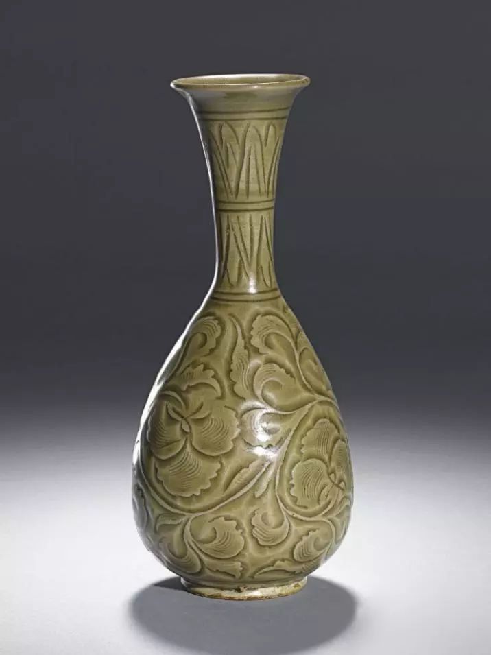 这件耀州窑刻缠枝牡丹纹玉壶春瓶也很不错,刻花精致饱满,器型优美。能拍出241,250 英镑的高价,也算是高古瓷中的重器。