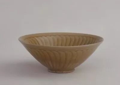 此碗为宋代耀州窑青瓷的代表作品。在装饰方面,以碗心的一朵团花为中心,放射状地向外刻出一片片菊瓣纹,布局舒朗匀称,线条活泼流畅又不失规整,反映出当时艺师们的审美观念,代表了耀州窑瓷器刻花工艺的突出成就。