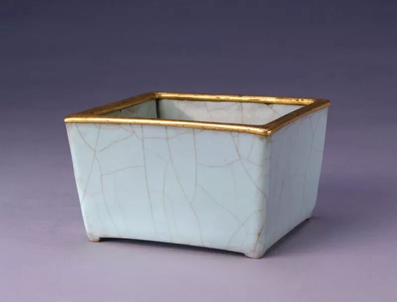 官窑青釉方花盆,宋,高9.2cm,口边长15.3cm,足边长13.0cm。