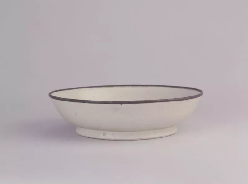 定窑瓷器的烧造主要采用覆烧法,就是将器皿反扣着焙烧,因此口沿无釉,露出瓷胎,这种现象谓之“芒口”。采用覆烧法可以提高产量,降低成本。瓷器烧成后,为避免芒口这种缺陷,有时使用金、银、铜等镶嵌器口。