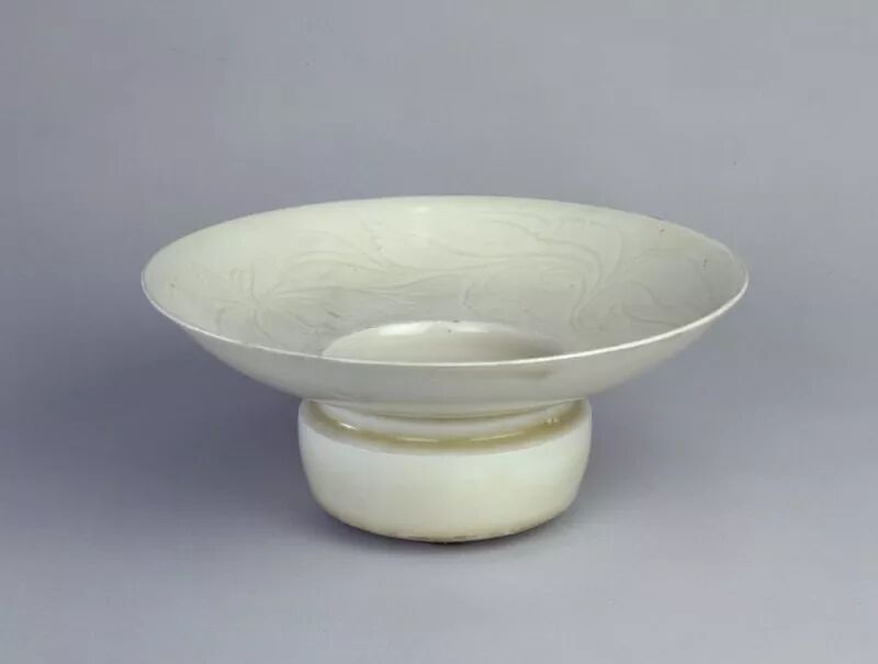 此件作品所刻主题花卉枝干矫健,花朵丰满,配在温润晶莹的白色釉面上典雅优美,是定窑刻花白瓷的代表作品。