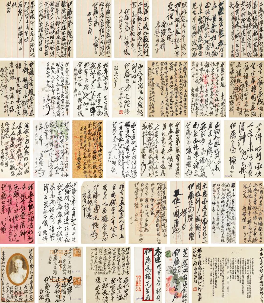 Lot 638齐白石致伊藤为雄信札二十六通二十八纸(附实寄封二枚、明信片三枚)拍品估价:4,200,000 - 6,200,000 人民币1. 内收齐白石致伊藤为雄信札二十六通,附信封两枚,明信片两枚,照片一帧。2. 上款人伊藤为雄,曾任职于日本横滨正金银行。先后担任横滨正金银行北京、大连分行行长,白石翁与其往还十余年,引为“画事知己”。