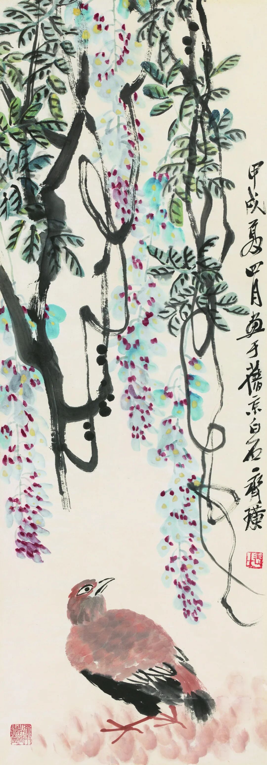 Lot 748赵少昂[1905-1998]花鸟百开册拍品估价:1,800,000 - 2,000,000 人民币钤印:赵氏少昂(61次)、少昂急就(26次)、赵(12次)、我之为我自有我在(10次)、少昂(4次)、足迹美英法意瑞德日印菲诸国(7次)出版:《赵少昂花鸟画集锦百开册页》,陕西人民美术出版社,2012年。