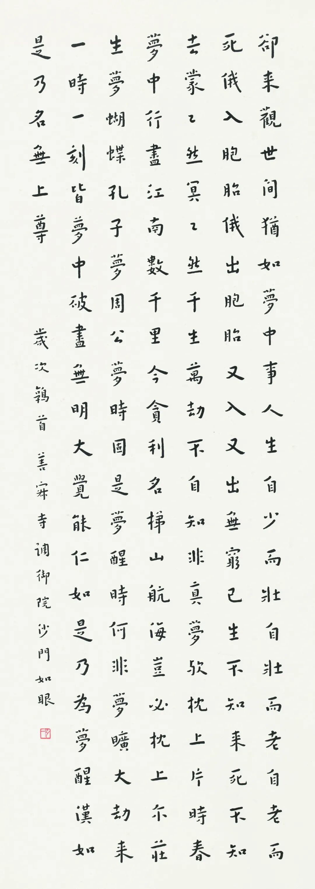 Lot 516弘一 [1880-1942]楷书世梦拍品估价:2,200,000 - 2,800,000 人民币2.《弘一大师遗墨(附年表)》第62页,香港南天书业公司,1970 年。3.《弘一大师全集·九·书法册》第193页,福建人民出版社,2010 年。4.《新加坡秋斋藏画·卷二》第108-109页,新华美术中心,2010 年。