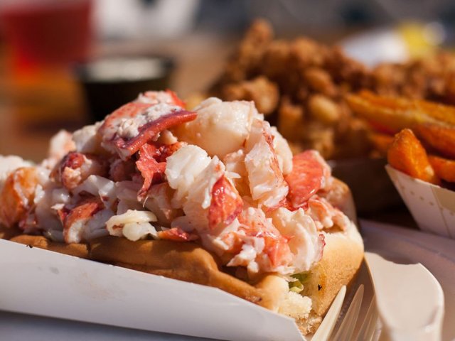 在美国缅因州的Bar Harbor,汁多肉嫩的龙虾卷是必吃的美食之一。