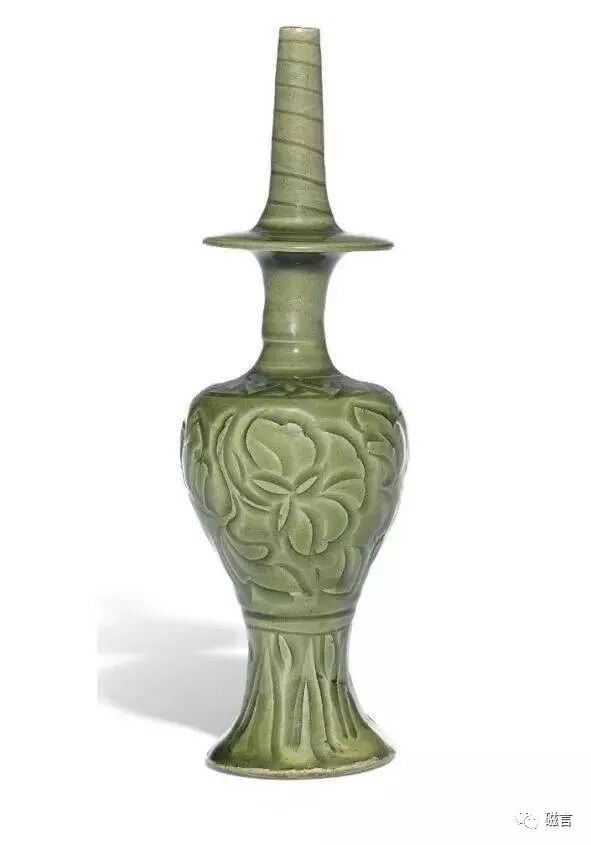 这件耀州窑刻缠枝牡丹纹玉壶春瓶也很不错,刻花精致饱满,器型优美。能拍出241,250 英镑的高价,也算是高古瓷中的重器。