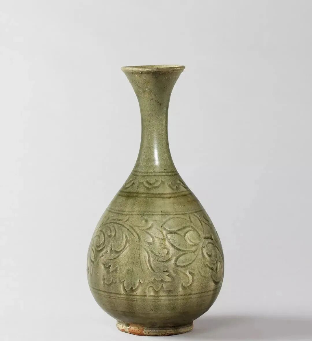 北宋 耀州青釉刻牡丹花净水瓶