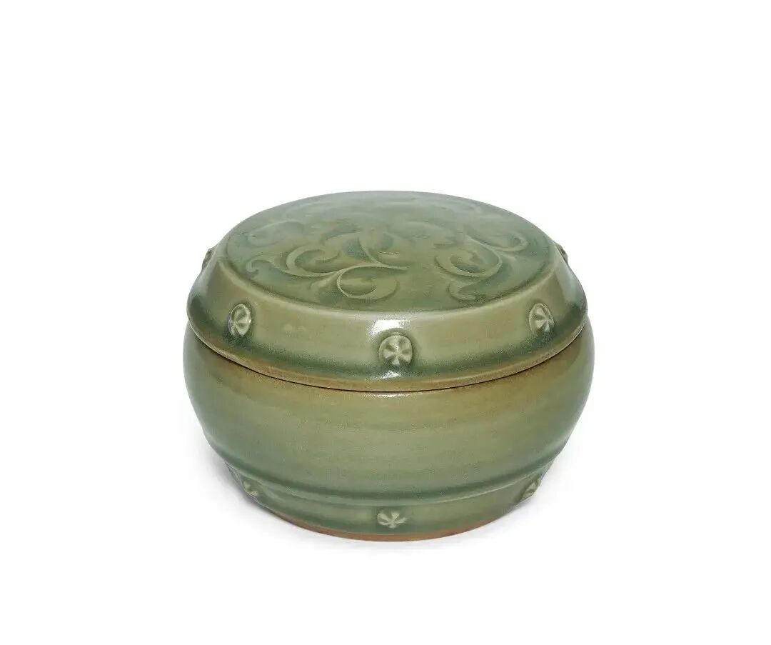 北宋至金 耀州青釉牡丹纹盖罐