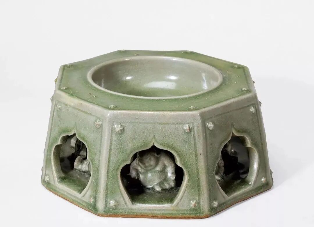 此类耀州窑八方供器甚为罕见,仅知一相似钧窑作例,可资比较,属大维德爵士雅蓄,现贮于大英博物馆。