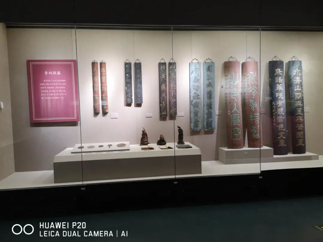 本次展览向大家展出了晋祠内的六幅楹联,分别为何绍基行书“风篁类长笛,流水当鸣琴”联;杨式琛楷书联“结构粗完存太古意 登临胜概作别样观”;松谷六言联“似岳阳不少水,比黄鹤又多山”;刘炳森隶书十言联“水秀山明无墨无笔图画,鸟语华笑有声有色文章”;黄苗子五言联“水光射檐动,山色入廊空”;傅山行书七言联“圃蕊城萝随点缀,事来功赴谢玄虚”。