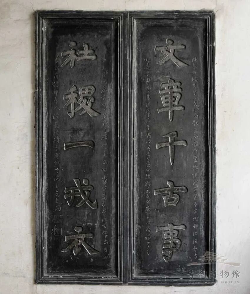 清代文学家朱彝尊五次游晋祠,都对唐碑赞不绝口,留连忘返,并亲笔写下“文章千古事,社稷一戎衣”为唐碑作楹联。这幅楹联既表达了作者对唐太宗文韬武略、贞观之治的仰慕之情,也总结了历代统治者武力攻取天下,文教巩固政权的必然规律。
