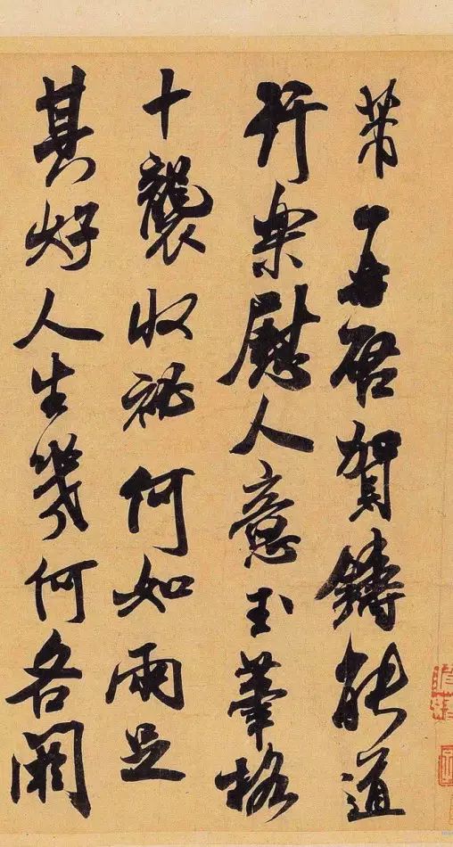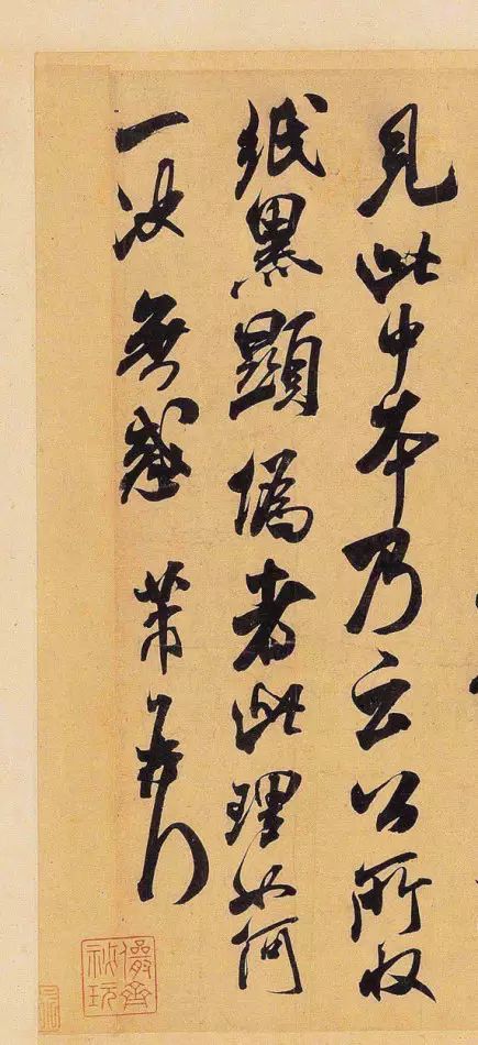 从《贺铸帖》里,我们看不出米芾「集古」的痕迹。展现在我们面前的却是有别于古人,颇具心意的书作。这证明,米芾具有食古化古,善于融会贯通的学习本领。《贺铸帖》呈逸迈奇崛之势慨,郁勃清健之态姿,从头到尾,无丝毫懈殆处,其用笔虽浓饱蘸而不令溢出线外,且墨重而意蕴,极显书者功力与个性。所谓书「本于笔而成于墨,笔不为墨所累,墨不能游于笔外,纯熟之极,然后浑然天成」(米芾自语),正是书者用笔技巧的总括。