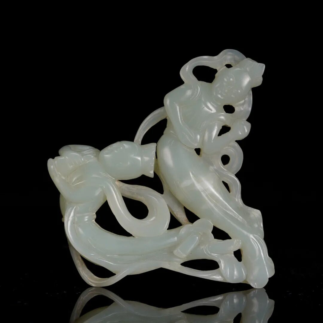 取材青玉雕琢而成,飞仙其势圆转而衣飞扬。工艺古拙而气韵传神,寥寥纹饰恰到好处,婉转而生动。