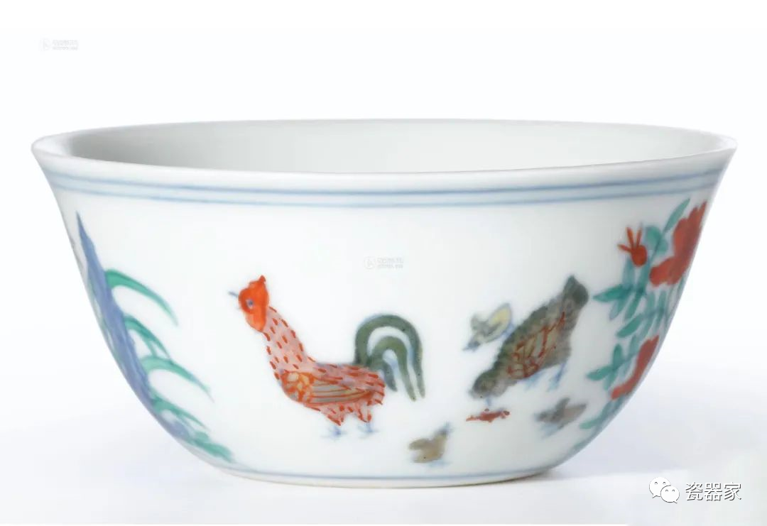 由于“成化官窑白瓷的质地、白硬居明代之冠”,口沿纵大,底足纵深,都很周正,不见变形。这样的胎质能经受反复修胎,故而纵是薄胎,稍为细心也能感触到器底器身器口的由厚到薄。叩击这样的器物,金属之声比宋定和永乐甜白之声,更清晰更绵长更悦耳,胎薄是成化斗彩及其明显的特点。如此优质的胎,全在于使用的土仍然是麻仓土,而且是将其按比例调配于泥浆中的制瓷原料“不子”。“不子”所制的胎,胎质柔糯、白净、细腻,微透肉红色,后世仿制难度大。