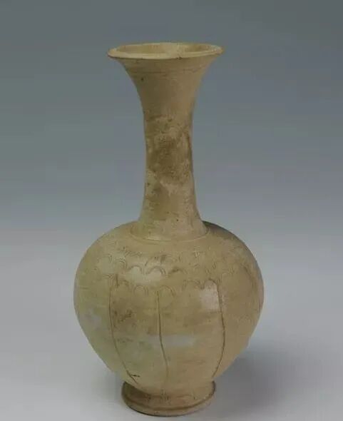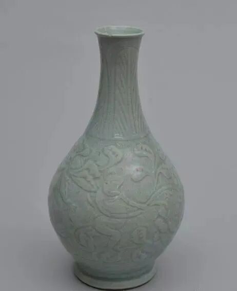 撇口,细颈,垂腹,圈足。通体施青釉,釉色明亮润泽,釉层柔和,底无釉。器身素面无纹,造型优美,制作规整,以变化的弧线构成柔和匀称的瓶体,是宋瓷中具有时代特点的典型器物,代表了当时青瓷的最高水平。2005年重庆市忠县文管所调拨。