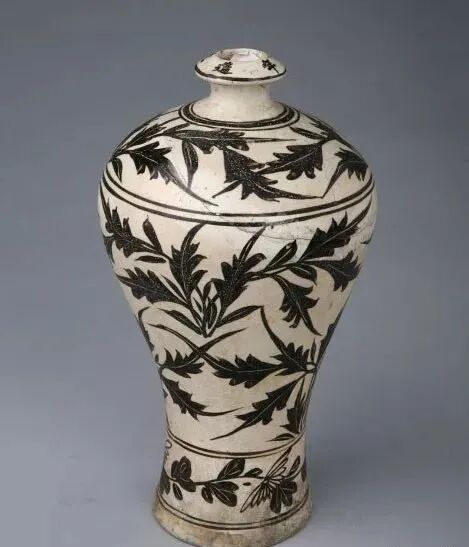 金“大定二年造”款磁州窑白地黑花草叶纹梅瓶