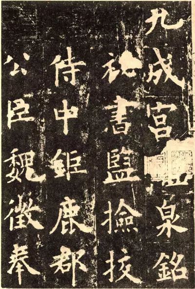 比如北宋时期书学理论家朱长文,在评论欧阳询写的《九成宫醴泉铭》碑文字体时说:“取细的与浓粗的中间体势,刚强有劲力而不屈从。就象有正义的官员执法一样,当面纠正缺点(面折),敢于在朝廷面前据理力争而直谏错对的风范。至于其点画工整妙美而又意态精确,没有可增加或减少的地方!”