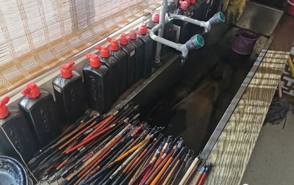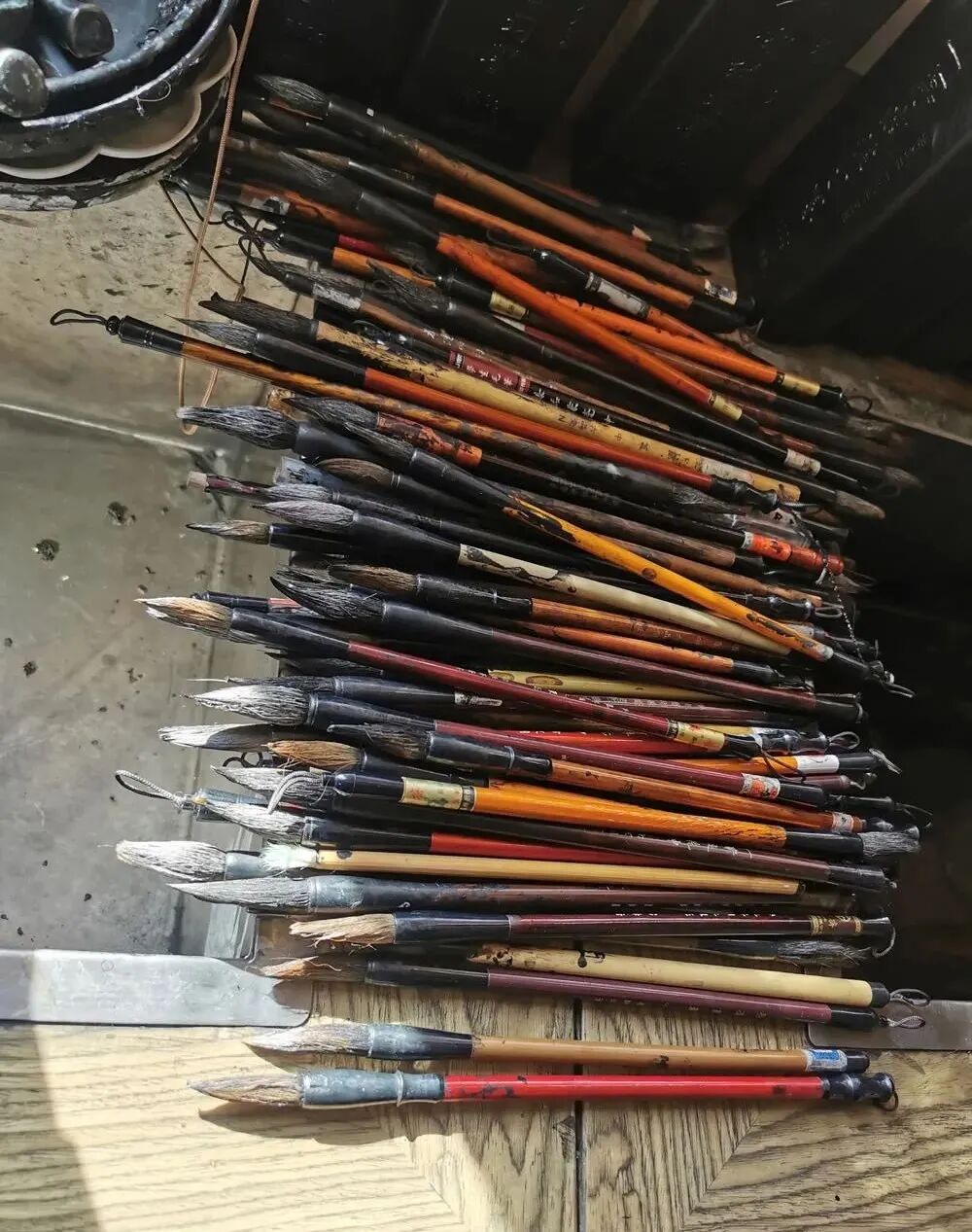 如果是多支毛笔同时洗,为了更好地护笔,最好把毛笔分开洗,因为毛笔的材料不同,有兼毫、羊毫、狼毫、紫毫等等之分,羊毫和狼毫的含墨量,必然大相径庭。分开洗,基本可以做到每支笔都洗干净。